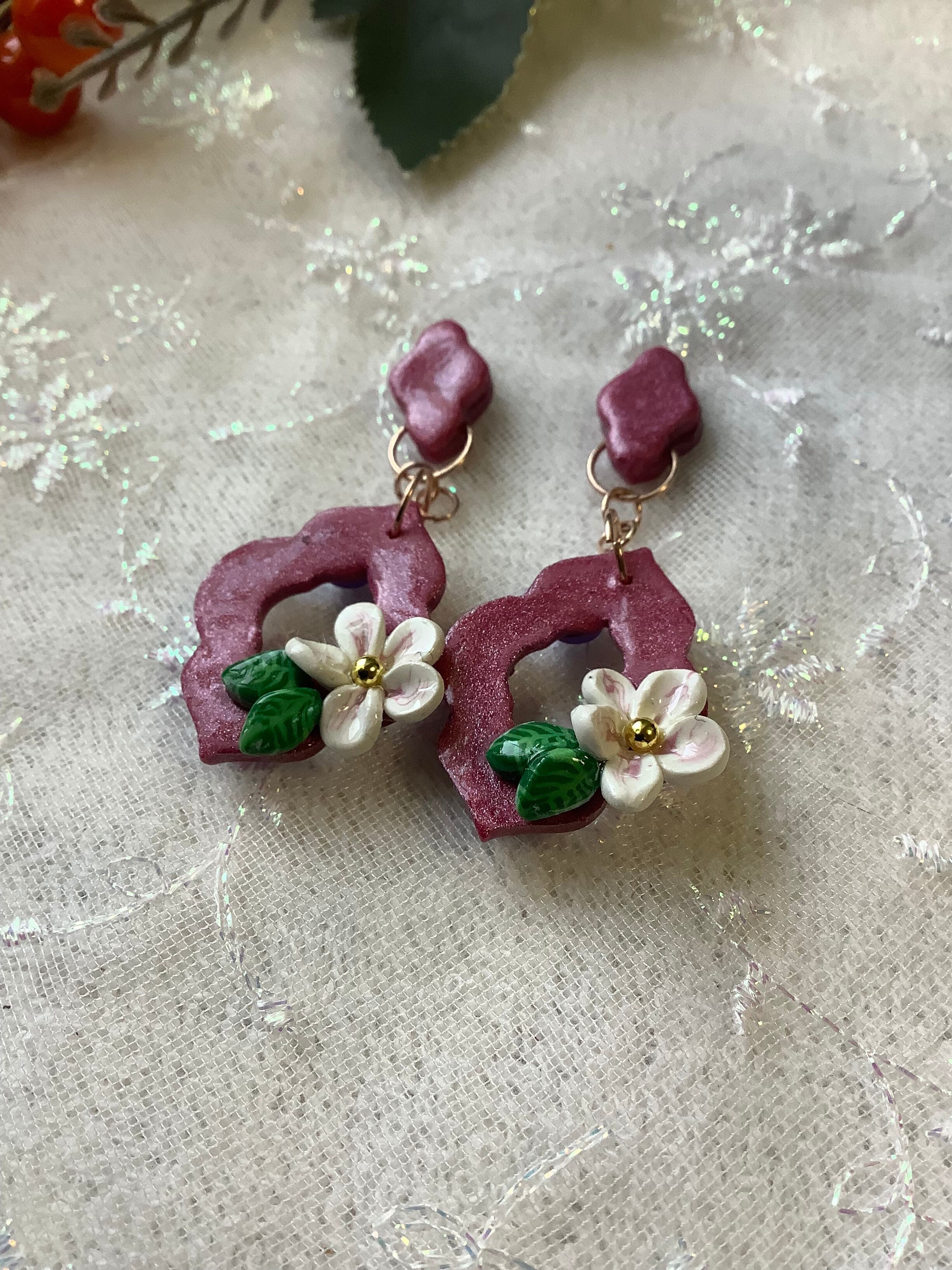 紅色の土台、表面に小さなつぼみ❗️裏面にお花をひとつがゆれるポリマークレイでおしゃれに優しく、可愛く❤️ゴージャスに‼️一点物です❗️視線を集めること間違いなしです。ポリマークレイの素材感が生み出す独特の表情と、鮮やかなカラーリングが特徴のアイテムです。日常使いにも特別な日にもぴったりで、どんなコーディネートにも合わせやすいアクセサリーとしていかがでしょう