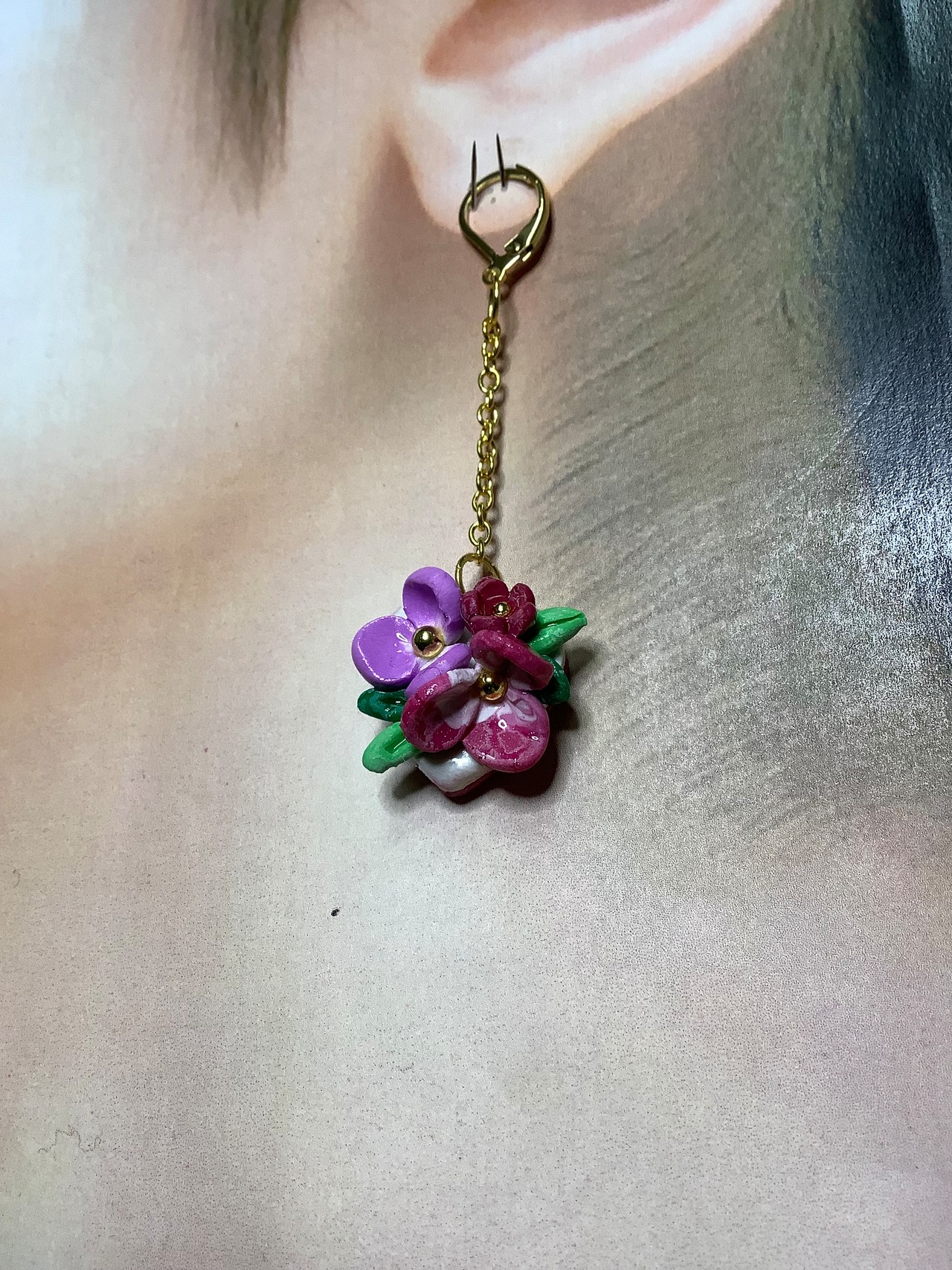 ポリマークレイのアクセサリーになります。サージカルステンレスのフックピアス‼️