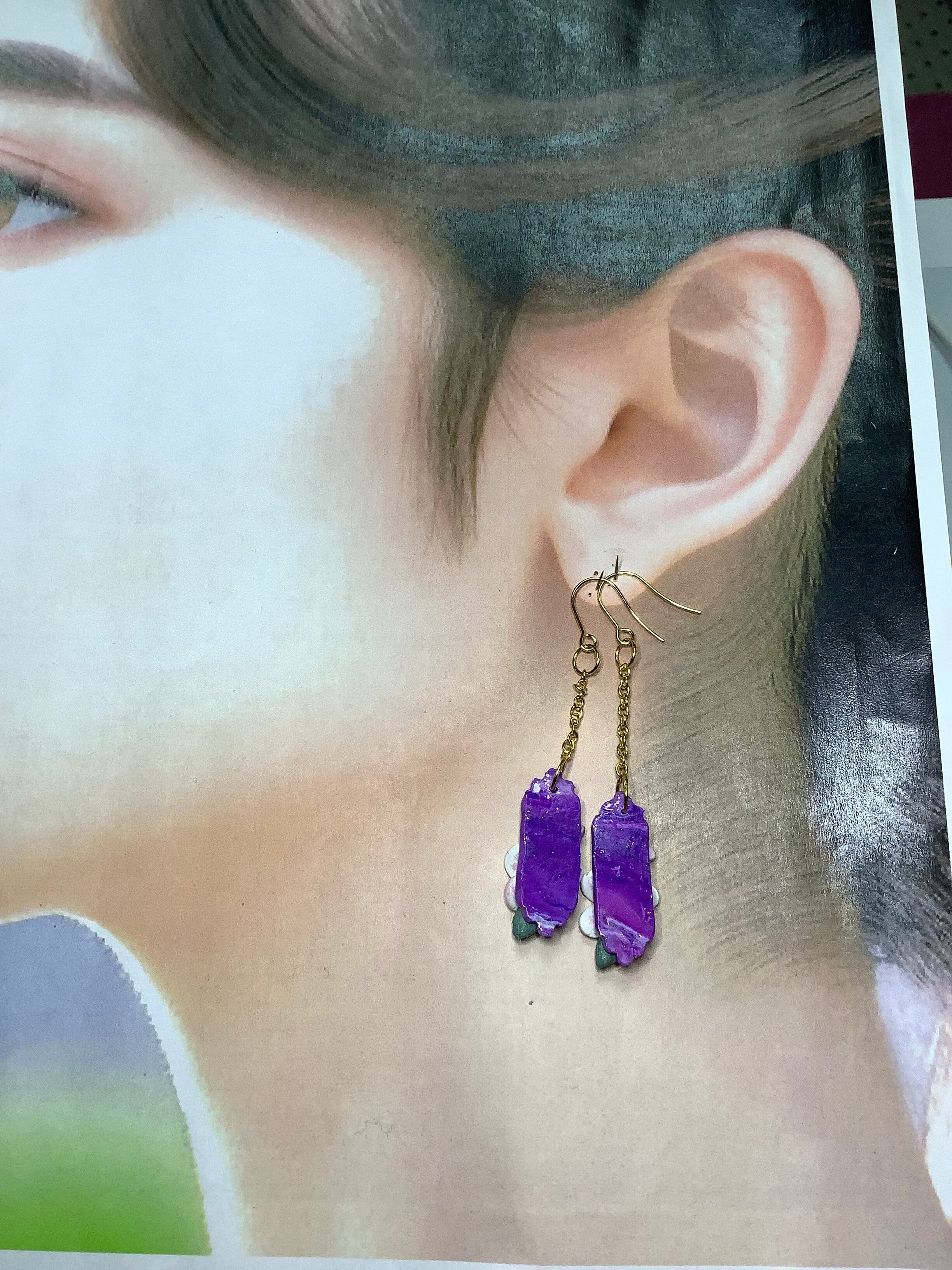むらさきグラデーションに白とピンクグラデーションのお花❗️裏面もむらさきグラデーションでおしゃれに優しく、可愛く❤️一点物です❗️視線を集めること間違いなしです。ポリマークレイの素材感が生み出す独特の表情と、鮮やかなカラーリングが特徴のアイテムです。日常使いにも特別な日にもぴったりで、どんなコーディネートにも合わせやすいアクセサリーとしていかがでしょう