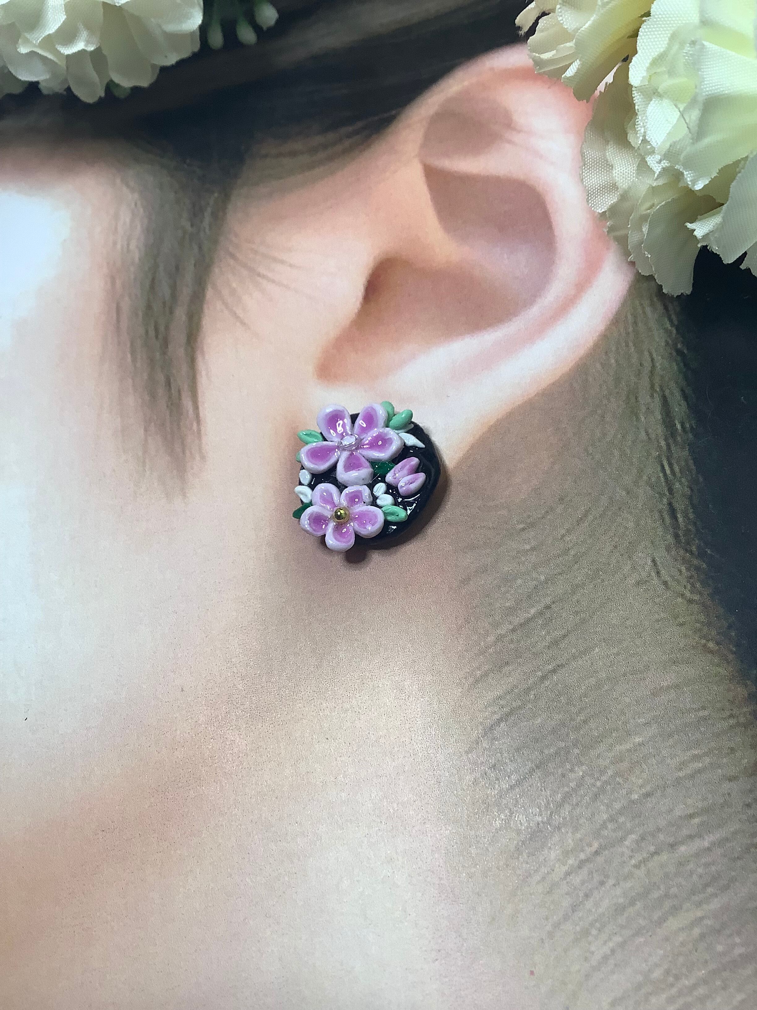 ポリマークレイのアクセサリーが登場!黒地に美しいピンクグラデーションのお花があしらわれた素敵な一点物です❣️イアリングやピアスの選択が可能で、どんなシーンでも大活躍間違いなしです❤️ポリマークレイの独特のテクスチャーと色合いが特徴のこのアイテムは、日常使いにも特別な日にもぴったりです。あなたのファッションを引き立てるアクセサリーとして、ぜひご検討ください!