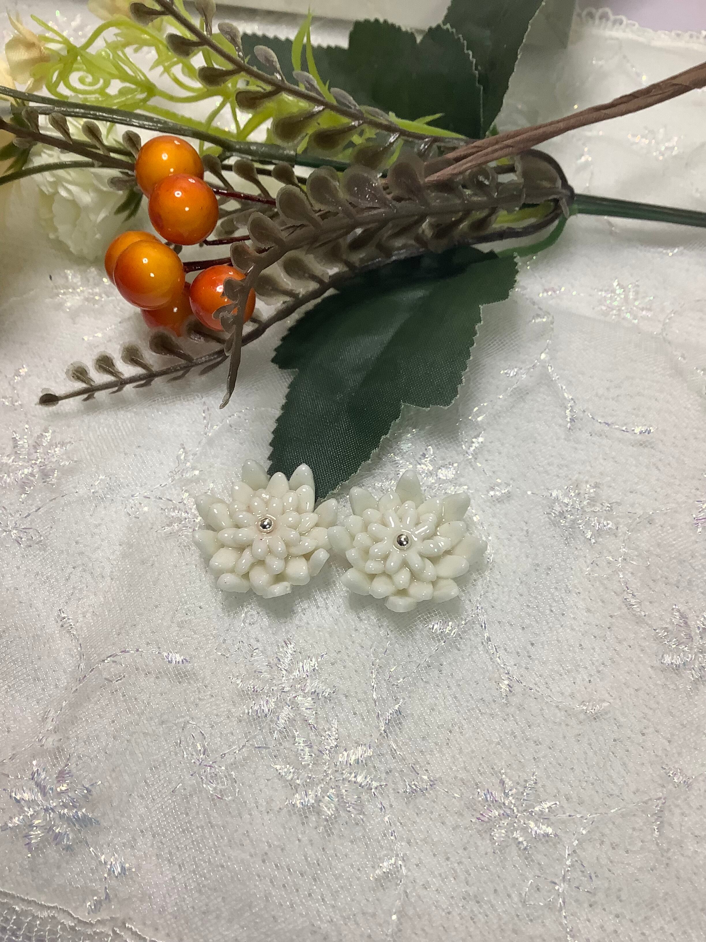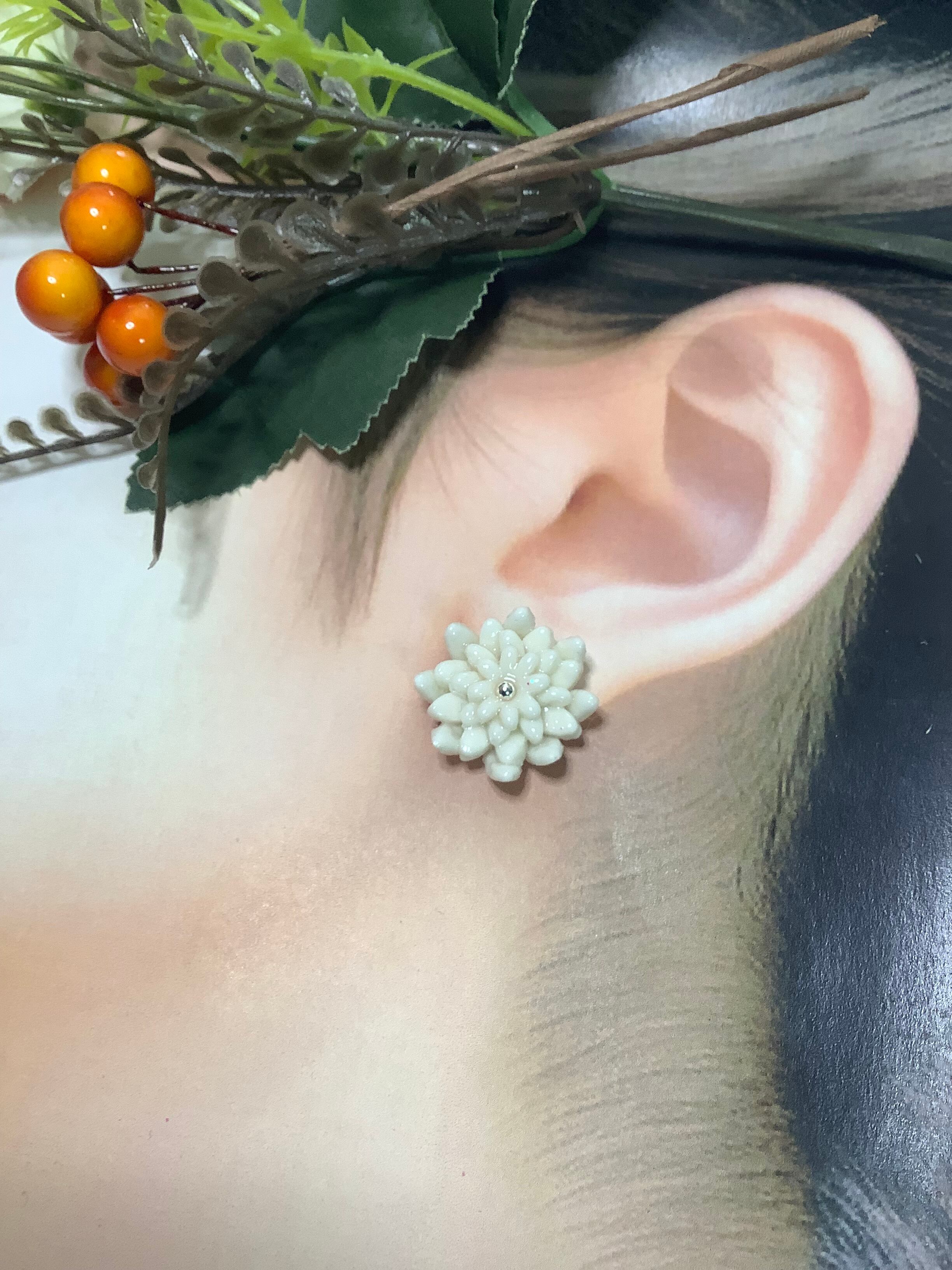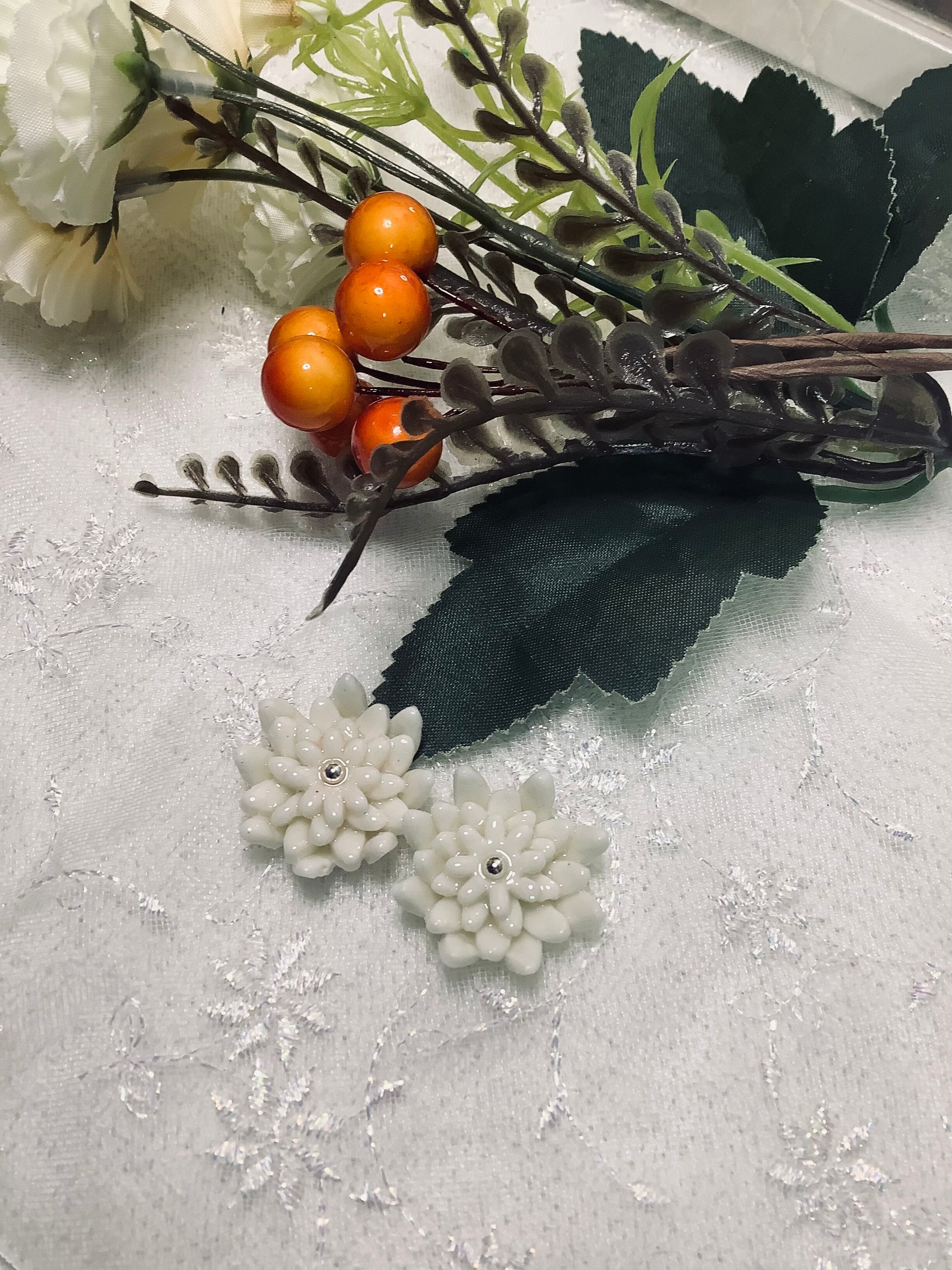 オフホワイトに少しキラキララメ、中心に銀色ブリオンで