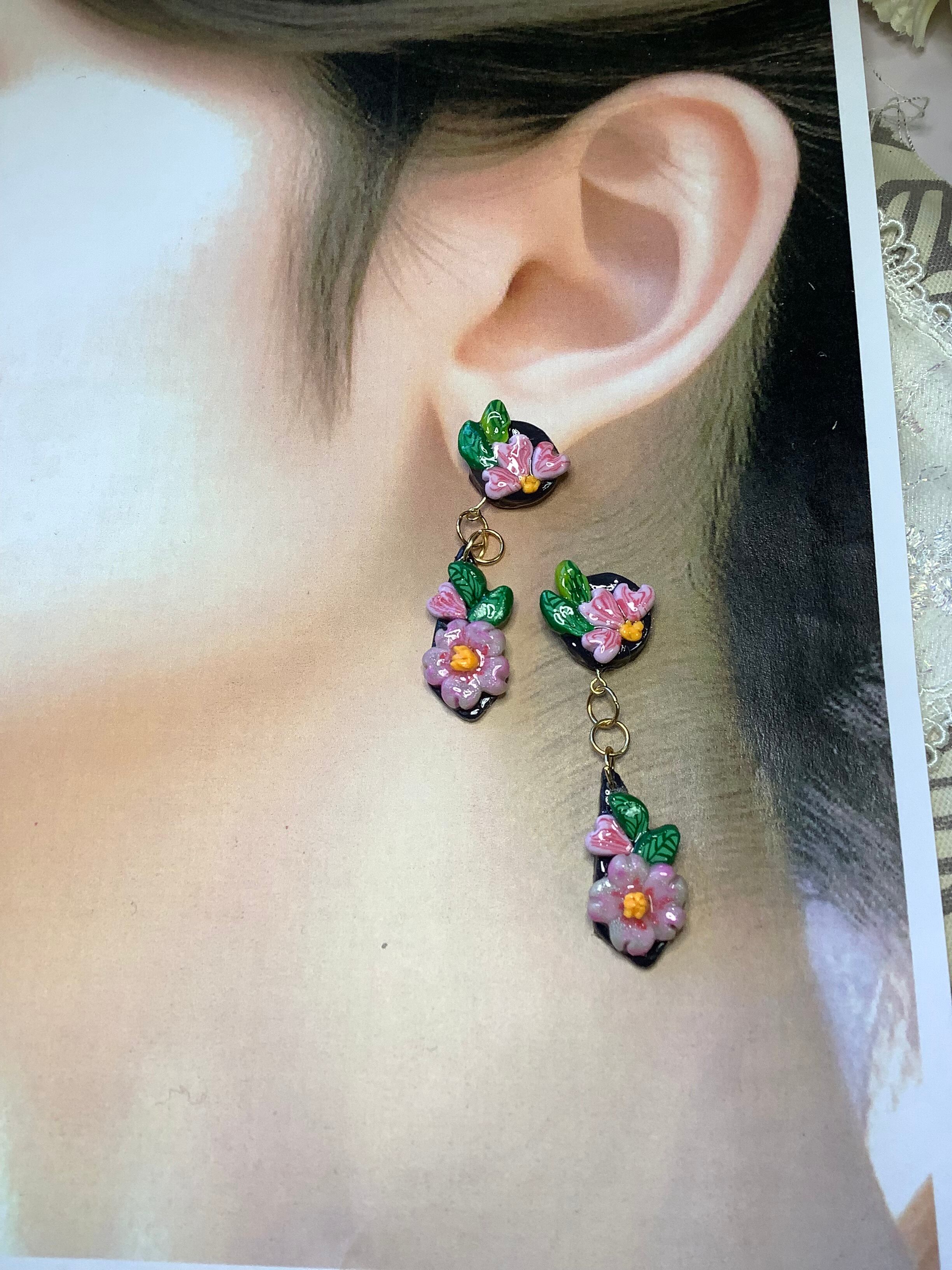 黒地にピンクグラデーションの花で、おしゃれに優しく、可愛く❤️ゴージャスに‼️一点物です❗️視線を集めること間違いなしです。ポリマークレイの素材感が生み出す独特の表情と、鮮やかなカラーリングが特徴のアイテムです。日常使いにも特別な日にもぴったりで、どんなコーディネートにも合わせやすいアクセサリーとしていかがでしょう