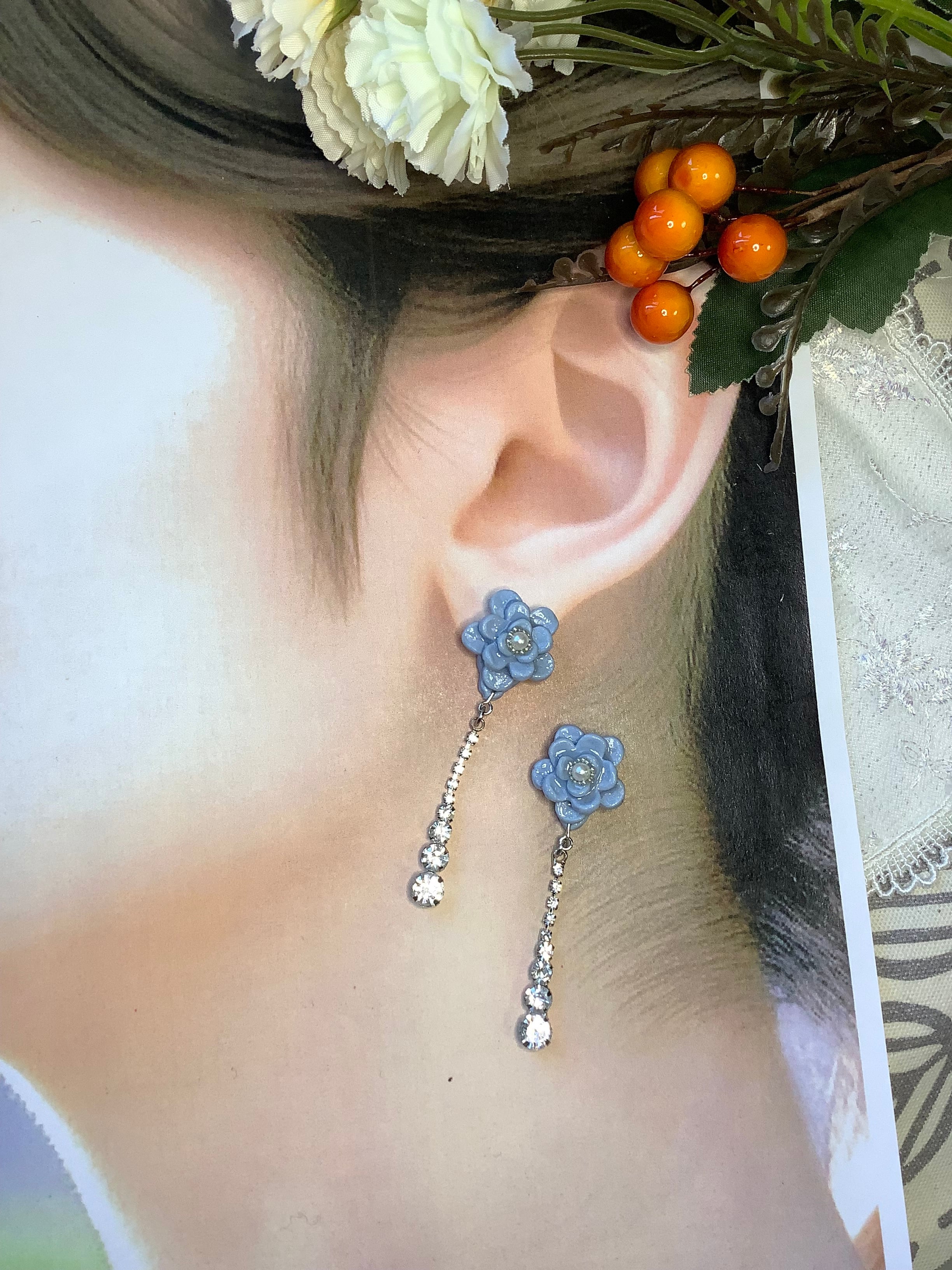 水色の花にゆれるキュービックジルコニアで、おしゃれに優しく、可愛く❤️ゴージャスに‼️一点物です❗️視線を集めること間違いなしです。ポリマークレイの素材感が生み出す独特の表情と、鮮やかなカラーリングが特徴のアイテムです。日常使いにも特別な日にもぴったりで、どんなコーディネートにも合わせやすいアクセサリーとしていかがでしょう