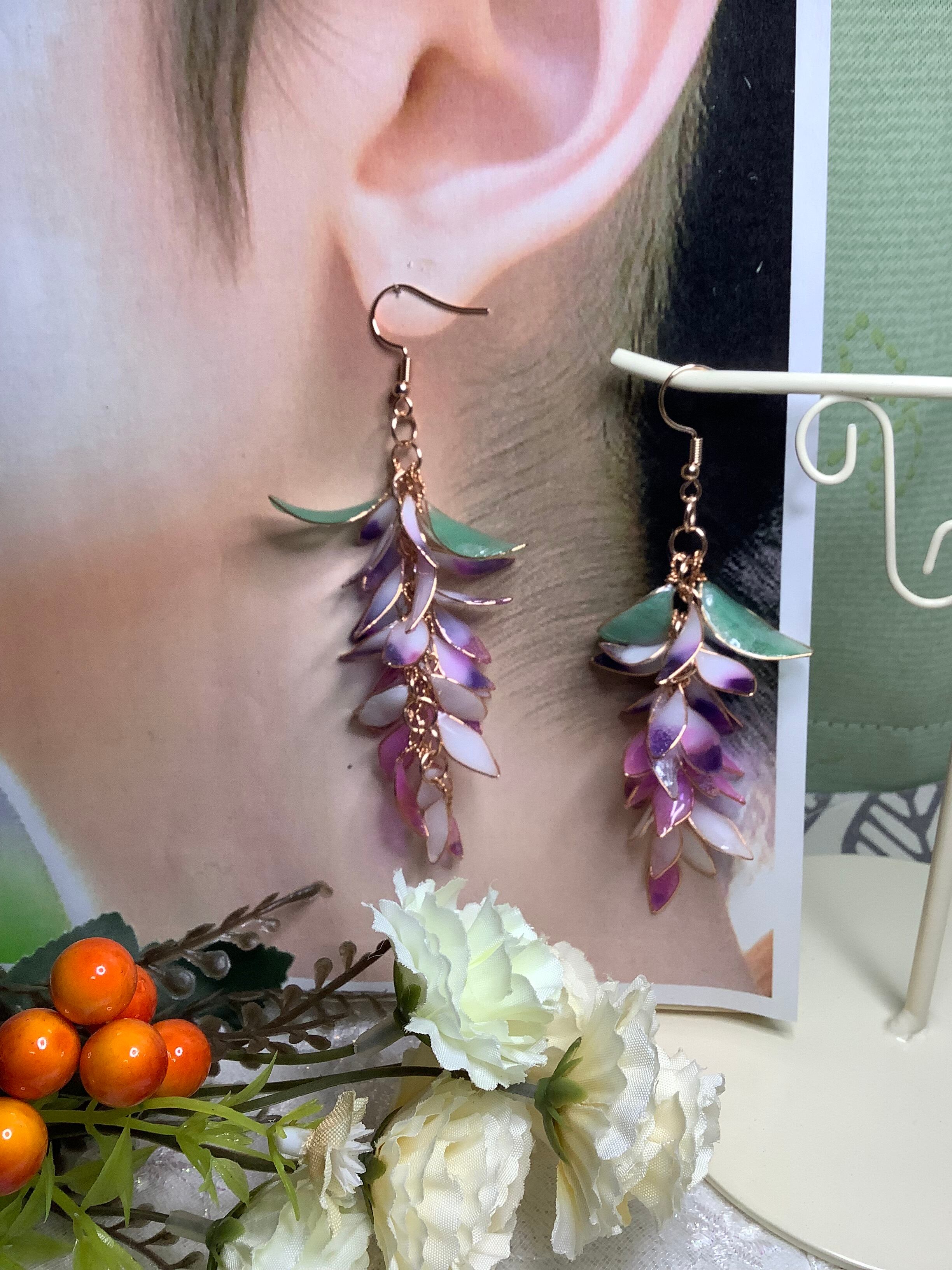 たくさんのレジンで花びらがゆれるアクセサリーになります。サージカルステンレスのピアスです。